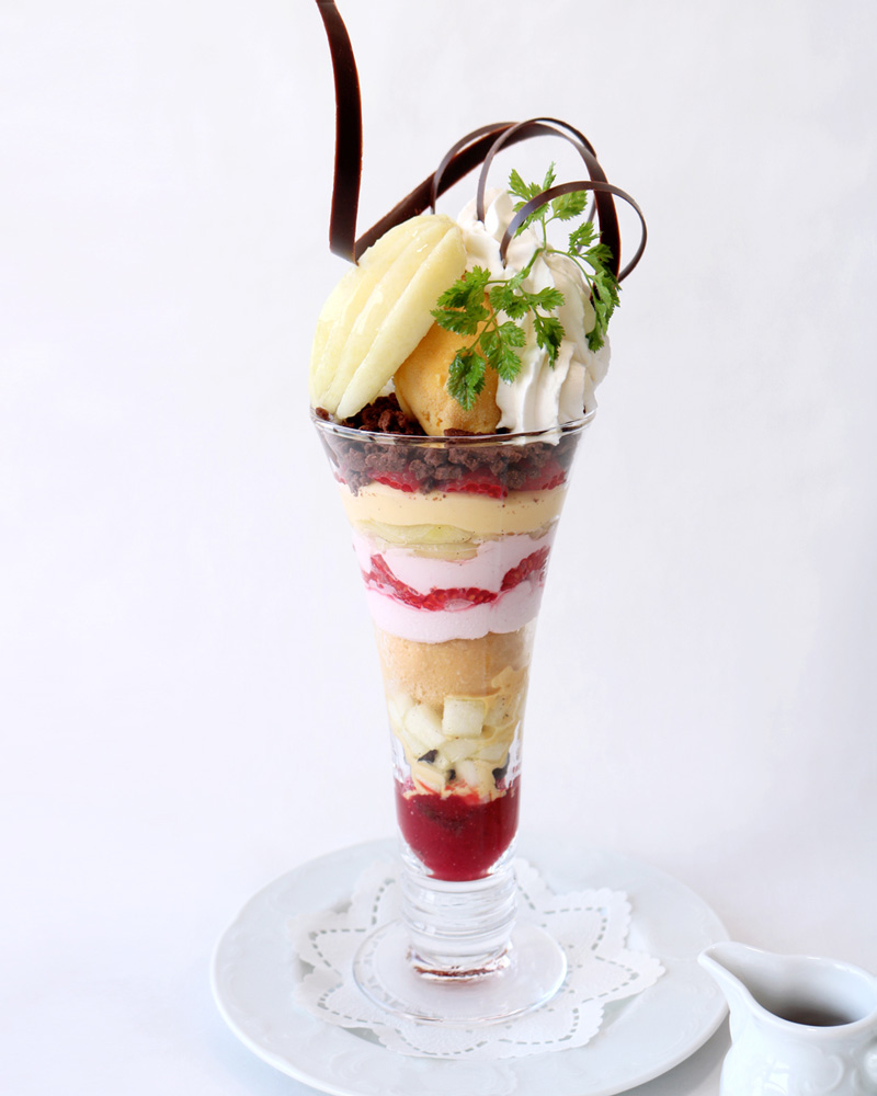 そして幸せな気持ちを高める姿かたちにも心を砕きます。クリスタルガラスのショーケースの中で、ケーキたちは選ばれるのを待っています。