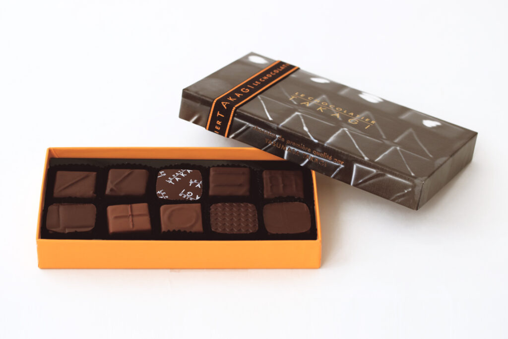 なかでもスペシャリテの“タカギ”はカリっと歯切れの良いショコラ ノワールの中から、なめらかな口どけのカカオ分68%ガナッシュクリームが広がり、カカオの酸味と落ち着く香りをお愉しみいただける逸品です。